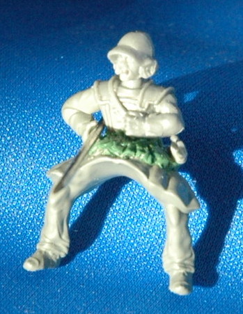 Both received greenstuff pteurges (fabric strips hanging down from the waist of the corselet) to conceal the join at the waist and complete their armour. A 45mm steel pin spear was added to each; one couched, the other at a more upright angle.