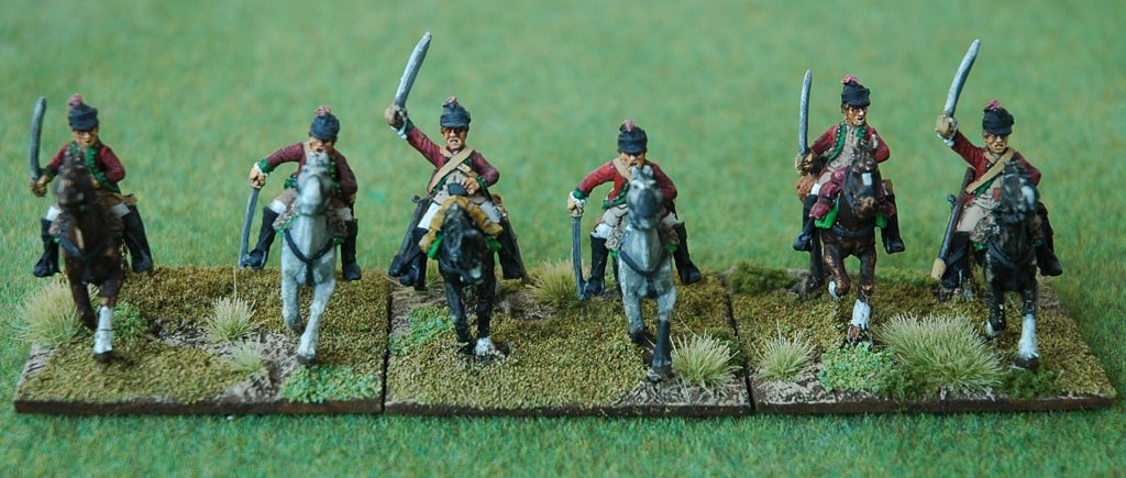 I did consider finding or converting some more figures to make the unit up to a full strength (in Piquet terms) of 4+ stands. However this might make the cavalrymen too powerful and distort the tactics of a North American battle in the Seven Years War. So I have stuck with 3 bases, and their general will just have to use them with care or risk them being shot up by almost any opposition they encounter.