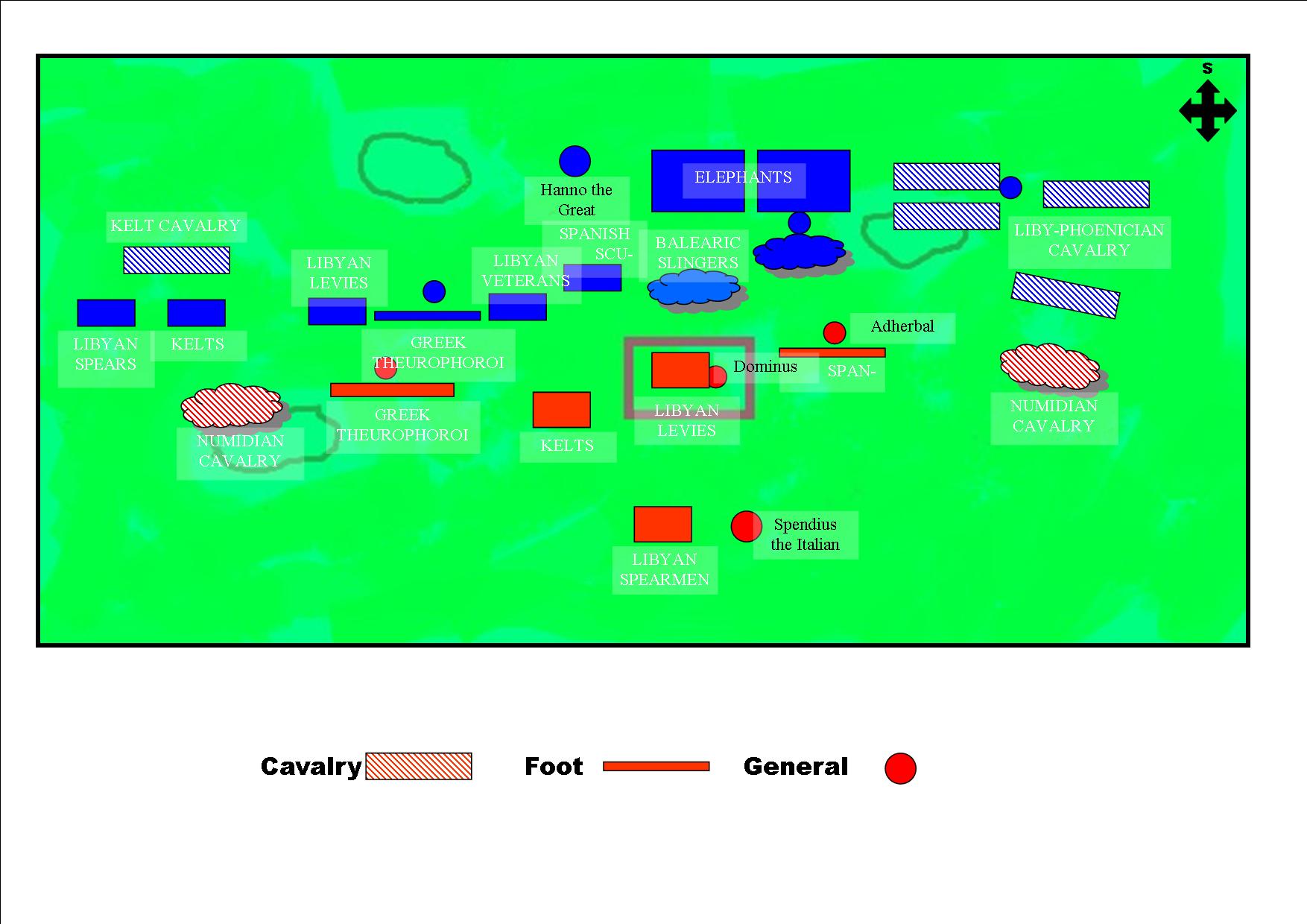 The Mercenary army with Numidians on left and right flanks.